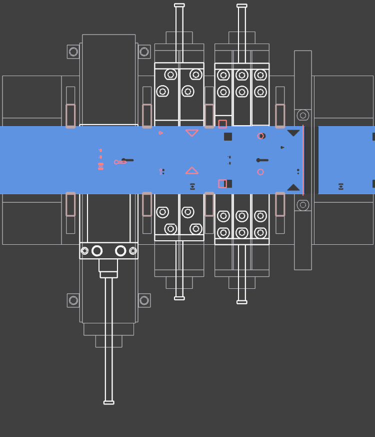 Das Band oder Profil wird durch den gesteuerten Vorschub auf die richtige Längsposition gebracht.